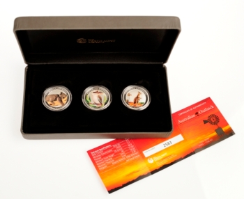 Kolekci tří mincí z ryzího stříbra vydala přední světová rafinerie The Perth Mint v limitované emisi 5000 sad. Z tohoto počtu je pro český trh určeno pouhých 100 kolekcí. Mince nesou motiv tří tradičních obyvatel australské fauny – koaly, klokana a ledňáčka. Každá z nich má hmotnost ½ unce (15,55g) a je z ryzího stříbra.