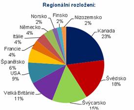 Grafy rozložení firem v koši fondu dle regionů a odvětví: