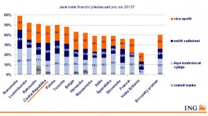 Ačkoliv úbytek na váze a zbavení se zlozvyků, jako je kouření nebo alkohol, stále patří k oblíbeným předsevzetím, zdá se, že rozšířená budou v příštím roce i ta, která souvisejí s financemi. Záměry finančního rázu se ve skutečnosti objevily v odpovědích respondentů mezinárodního průzkumu ING Bank častěji než ty ostatní. „Ekonomická situace v Evropě, ale i v jiných částech světa se odráží v novoročních předsevzetích obyvatel většiny evropských států. Lidé mají obavy z budoucnosti a snaží se stabilizovat své domácí rozpočty jak omezením výdajů, tak spořením v závislosti na tom, co si která domácnost může dovolit,“ komentuje Libor Vaníček, ředitel retailové části ING Bank ČR. Z našich sousedů si nejčastěji dávají předsevzetí týkající se financí obyvatelé Rakouska, a to ve více než 50% případů. Naopak mezi Slováky plánuje nějakou změnu v této oblasti života jen zhruba každý třetí.