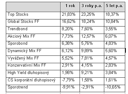 Výkonnost vybraných podílových fondů v % k 31. 12. 2014