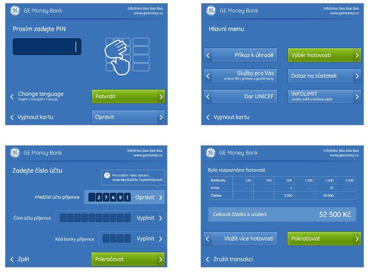 - Úpravy proběhly ve všech jazycích bankomatů GE Money Bank: v češtině, angličtině, němčině i francouzštině